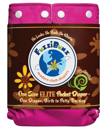 FuzziBunz , If you thought the FuzziBunz® One Size Diaper could not get any better-think again! FuzziBunz® has re-engineered their already popular One Size to be trimmer fitting, more comfortable, faster drying and easier to adjust than before! And best yet-with NO increase in PRICE! The FuzziBunz® One Size Elite gives you even more bang for your buck. Some features of the FuzziBunz® Elite are: Quick Dry Fleece: Baby feels dryer faster and fleece stays nicer longer Easy-Replace Elastic are all internal-no buttons next to baby's skin Minky Inserts: 2 Minky Inserts adding the following benefits Less odor than microfiber Less staining Trimmer fitting diaper with same amount of absorbency Streamlined front panel and snap design provides better fit with less leaking