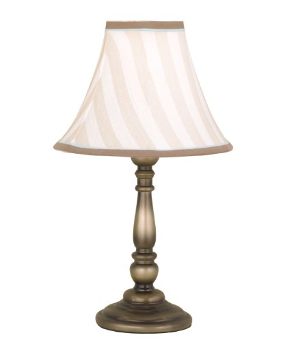 - This elegant fabric shade features subtle diagonal stripes in ecru over eggshell, trimmed with soft brown and blue