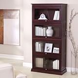 Book Cases Galore , The Bradshaw 4-Tier Barrister Bookcase - Cherry adds a touch of warmth to traditional motifs but modernists will adore the glass-paned doors and minimalist design. Recessed panels add subtle design value. Four fixed-height shelves provide plenty of storage space while the handsome glass doors keep contents dust-free. In fine barrister fashion these doors can be fully recessed into the bookcase when you lift and slide them into position. This offers you full access to the open shelves for as long as you need. Each shelf area measures 27.06W x 14.25H inches. Construction from quality real-wood veneers will withstand the rigors of wear. ...